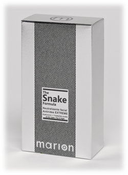 The Snake Formula es un Serum concentrado al 2.5% del producto Snake Syn, una nueva tecnología basada en un activo sintético formado por una molécula activa presente en el “veneno de serpiente” y el ácido hialurónico, que actúa bloqueando el receptor muscular nicotínico acetilcolina, quedando neutralizado el canal de los iones. De esta efectiva manera, el paso de los iones sodio queda bloqueado produciendo una relajación muscular.